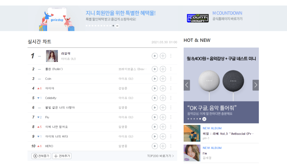 21.03.28.에 지니 실시간 차트를 만들어봤다.
