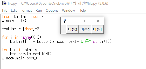비어 있는 리스트를 3개 준비하고, 3회 반복하면서 버튼을 생성한다.