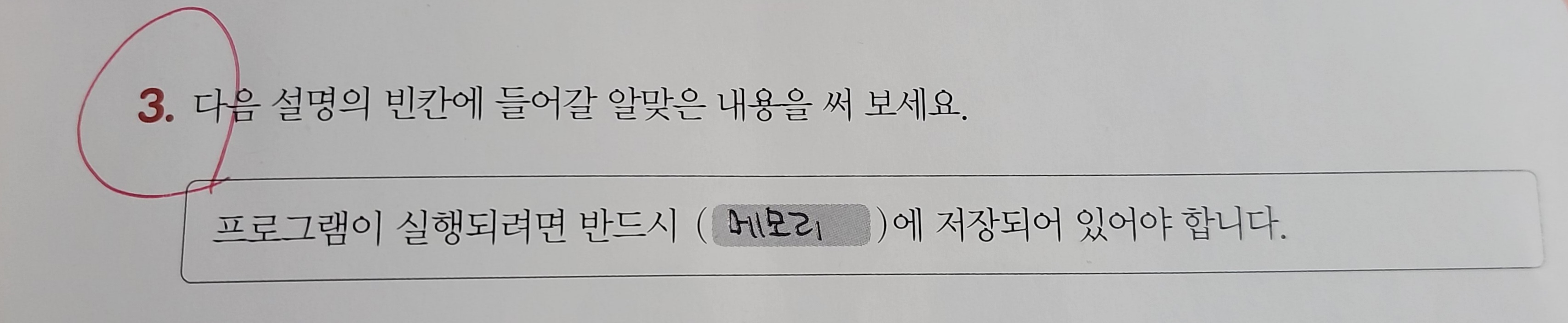 - 메모리는 현재 실행되는 프로그램의 명령어와 데이터를 저장한다.