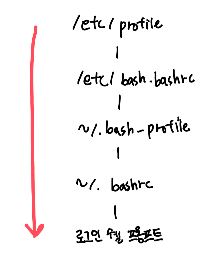 - ~/.bash_profile : 각 사용자를 위한 환경을 설정, 시작 프로그램 지정