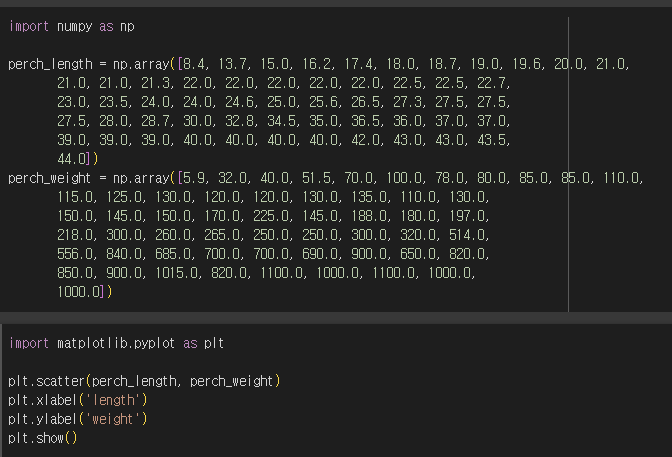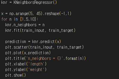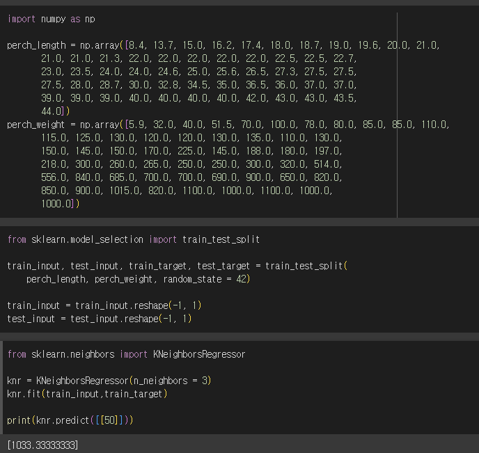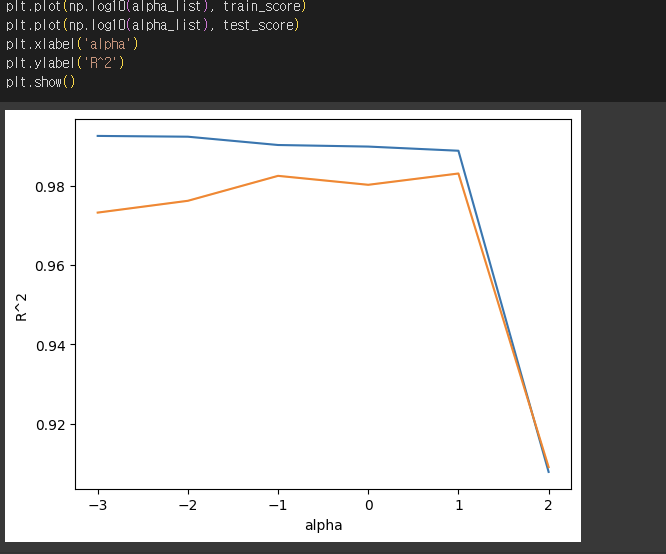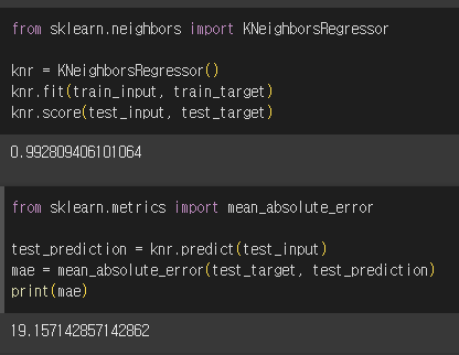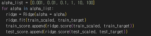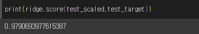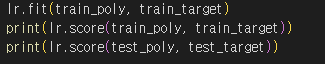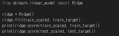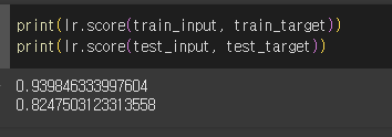 - 과소적합 : 훈련세트보다 테스트 세트의 점수보다 높거나 두 점수가 낮은 경우