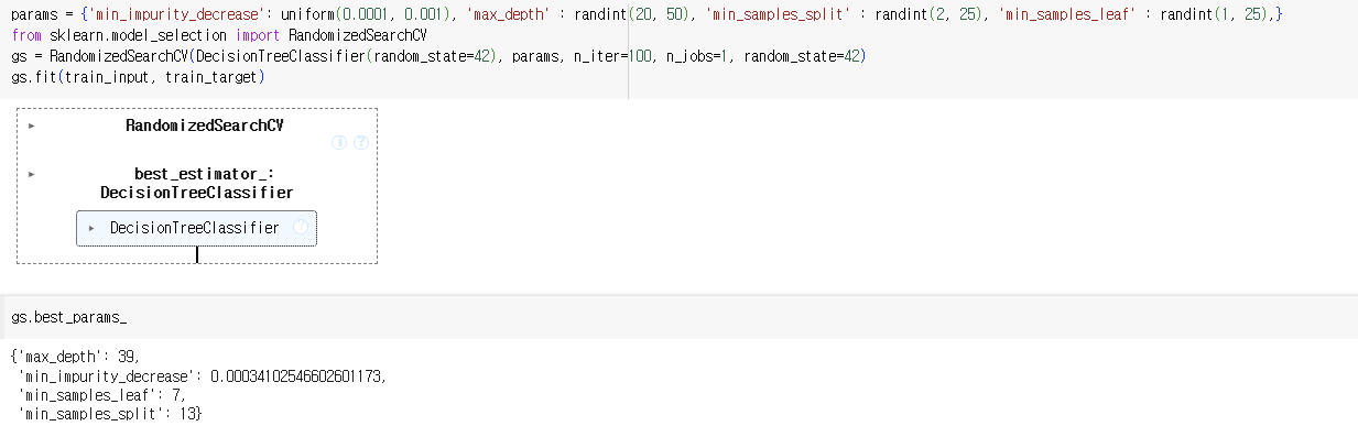 - 그리드 서치는 최상의 매개변수에서 전체 훈련 세트를 사용해 최종 모델을 훈련한다. 해당 모델도 그리드 서치 객체에 저장된다.