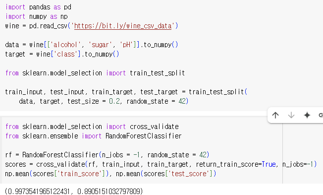 📜 추가 숙제 : Ch.05(05-3) 앙상블 모델 손코딩 코랩 화면 인증하기