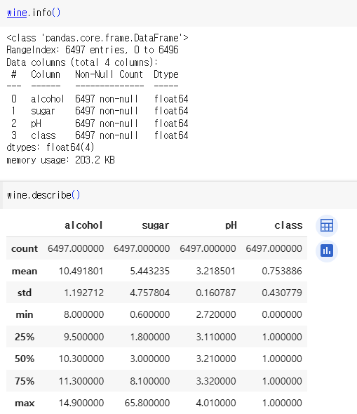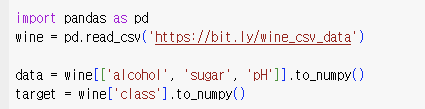 1) 로지스틱 회귀로 와인 분류하기