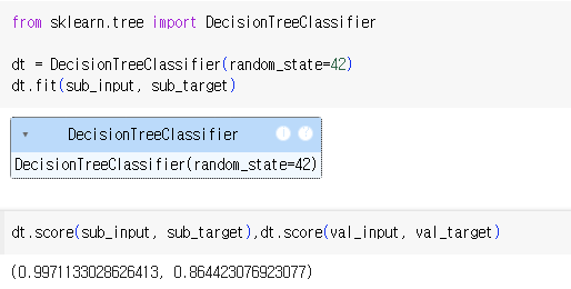 - 훈련 세트에서 모델을 훈련하고, 검증 세트로 모델을 평가함.