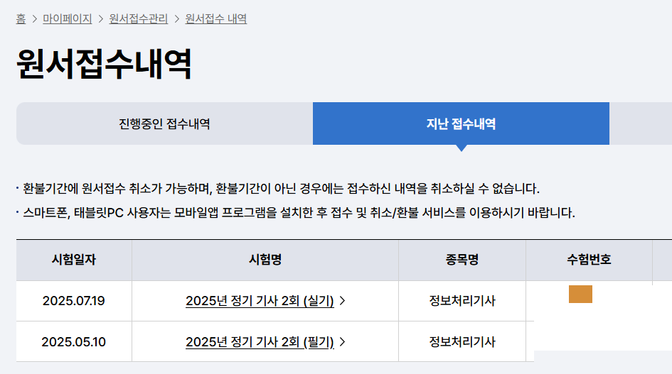 - 시험명 : 2025년 정기 기사 2회 (필기) [정보처리기사], 2025년 정기 기사 2회 (실기) [정보처리기사]