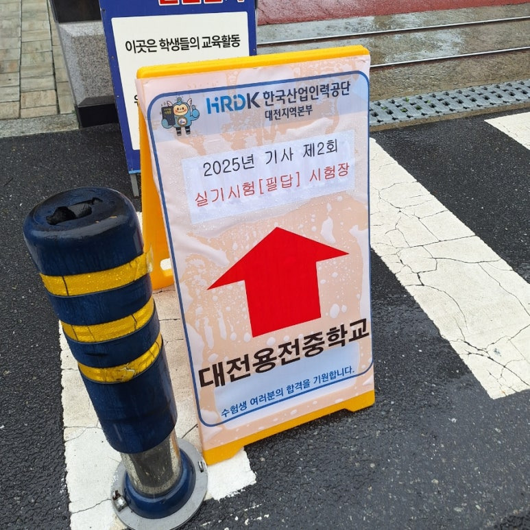 실기의 경우 본가인 대전에서 응시했습니다. 신분증, 필통, 수험표를 챙겨서 용전중학교에 다녀왔습니다. 시험방식이 시험지를 받아서 볼펜으로 푸는 형태이기에 컴퓨터실이 아닌 평범한 반에서 진행되며 볼펜을 꼭 챙기셔야 합니다!