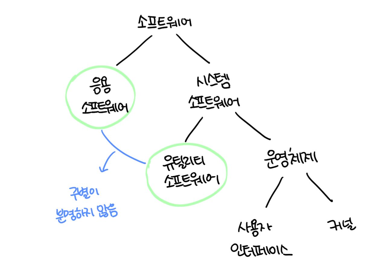 - 유틸리티 소프트웨어 (utility software) : 운영체제에는 포함되지 않지만 컴퓨터에서 기본적인 활동들을 수행하는 프로그램 (운영체제의 기능을 확장시켜주는 소프트웨어)