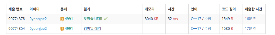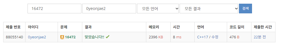 https://www.acmicpc.net/problem/4991 코드#include #include #include using namespace std;#define MAX 21#define FASTIO ios::sync_with_stdio(false); cin.tie(NULL);typedef pair, pair> pi;int w, h, dirty = 0, rx, ry;int arr[MAX][MAX], dx[4] = { 1,-1,0,0 }, dy[4] = { 0,0,1,-1 };bool visit[MAX][MAX][1 q; q.push({ {rx,ry},{0, 0} }); while (!q.empty()) { int nx = q.front().first.first; int ny = q.front(..